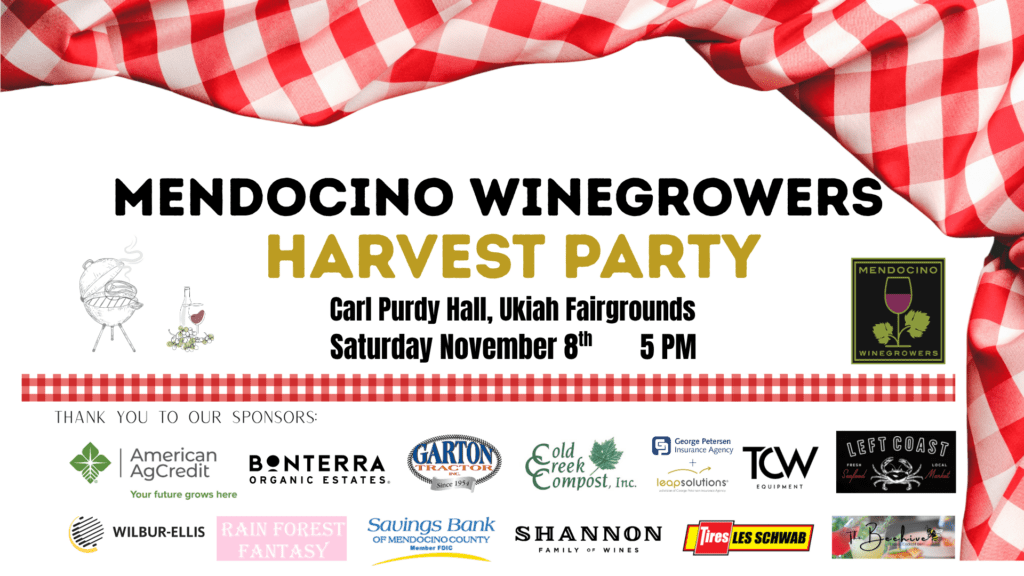 Celebrate the incredible Mendocino wine community and the fantastic 2025 harvest at our annual party! Get ready for an evening packed with delicious barbecue, great music, and plenty of laughs.